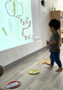英語のアクティビティでは身の回りにあるものを使って、親しみのある言葉で英語に触れます。
